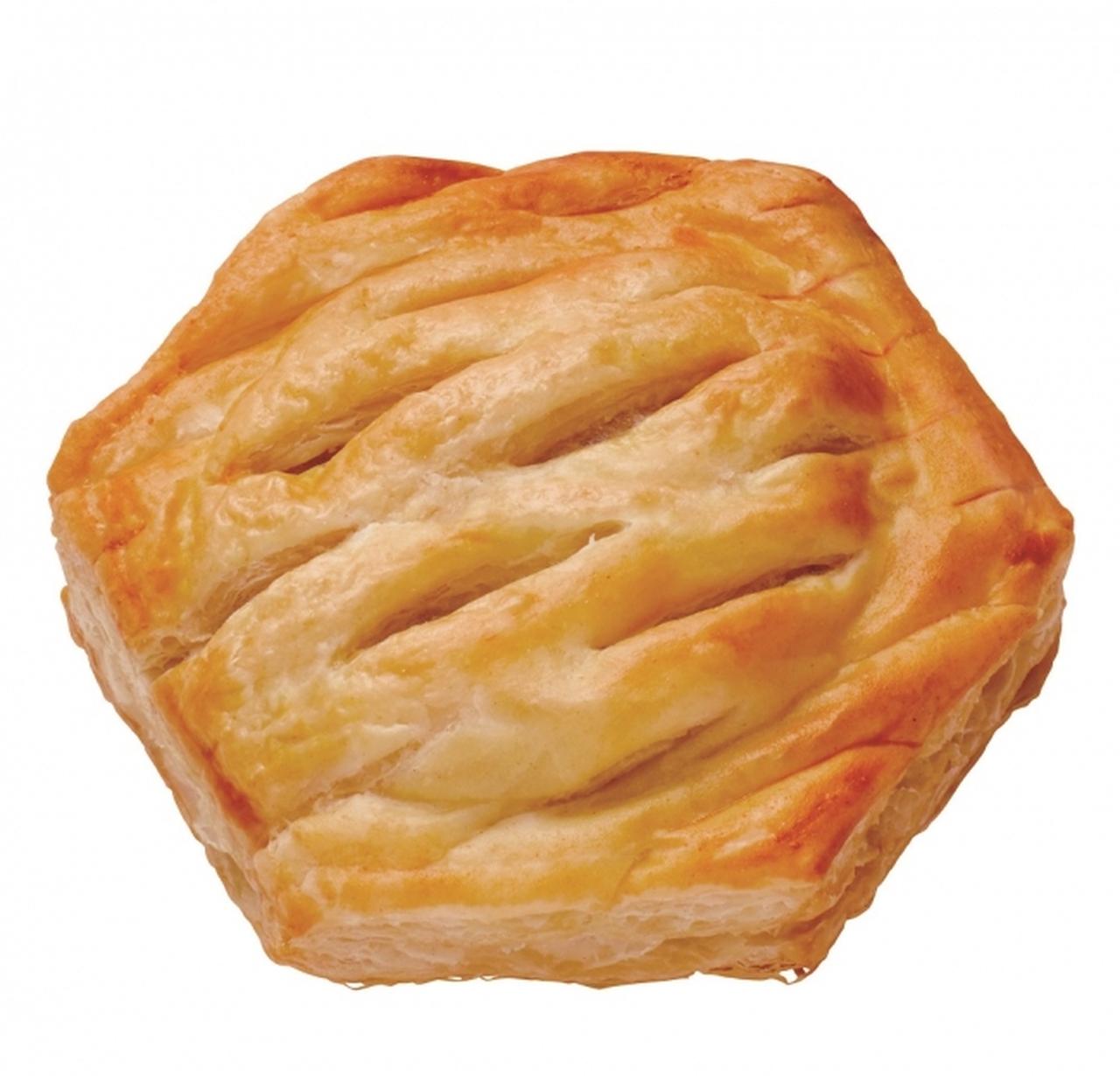 シャキシャキした食感と甘酸っぱさが楽しめるりんごフィリングをサクサクのパイ生地で包んで焼き上げた。(216円)