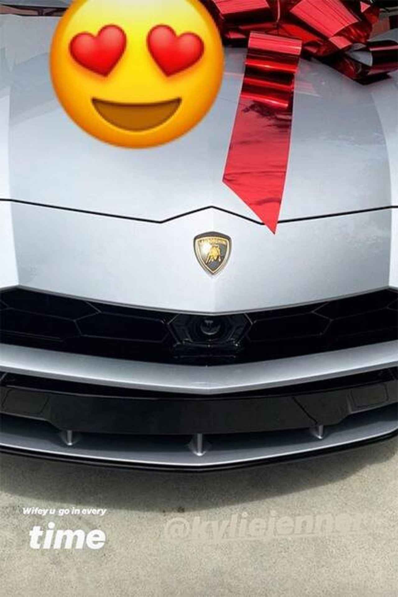 トラヴィスがインスタグラムストーリーで公開した、カイリーから贈られたシルバーのランボルギーニ。©Travis Scott/ Instagram