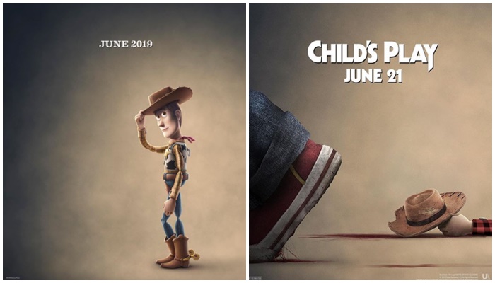 じつは今回『チャイルド・プレイ』側が公開したポスターは、『トイ・ストーリー4』が公開したものと同じような構成で、比べてみても『チャイルド・プレイ』が『トイ・ストーリー4』のポスターをパロディにしているのは一目瞭然。