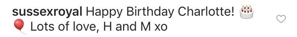 最後に、「ヘンリー(Harry)とメーガン(Meghan)より」というひと言に、「ハグ&キス」を意味するインターネットスラング「xo」という言葉を添えて、姪にあたるシャーロット王女の誕生日を祝福した。