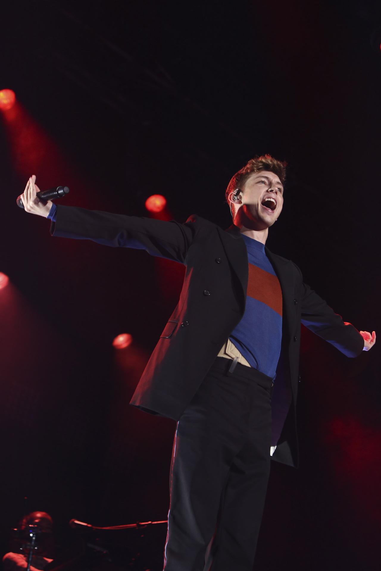 会場が暗転した瞬間、悲鳴にも近い歓声が会場に広がる。トロイはステージではなく、バルコニーから登場するという変化球で姿を現し、「Seventeen」でライブをスタート。つづけて「Bloom」「Plum」を熱唱すると、あっという間に会場全体が彼の世界観に染まった。