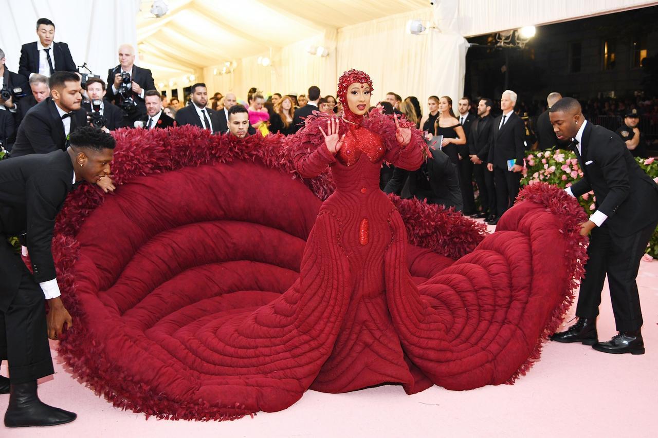 2019年のグラミー賞で女性アーティストとして史上初めて「最優秀ラップ・アルバム賞」を受賞したラッパーのカーディ・Bが、現地時間5月6日に米ニューヨークのメトロポリタン美術館で開催されたファッションの祭典 「メットガラ(Met Gala)」に、トム・ブラウン(Thom Browne)がデザインした深紅のドレスを着て登場。
