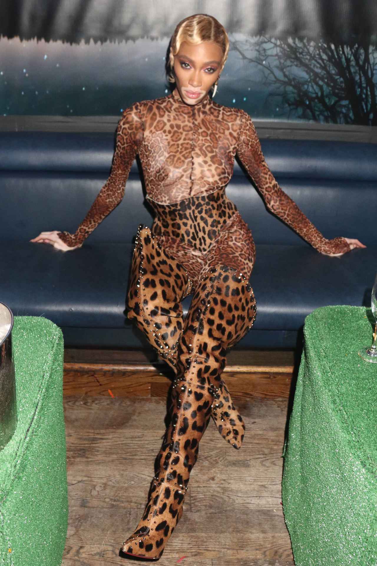 世界で最も美しい「まだら肌」の持ち主として知られるモデルのウィニー・ハーロウが、米現地時間5月6日に開催されたファッションの祭典メットガラ(Met Gala)のアフターパーティーに、ヒョウ柄&シースルーの全身タイツを着て参加。(フロントロウ編集部)