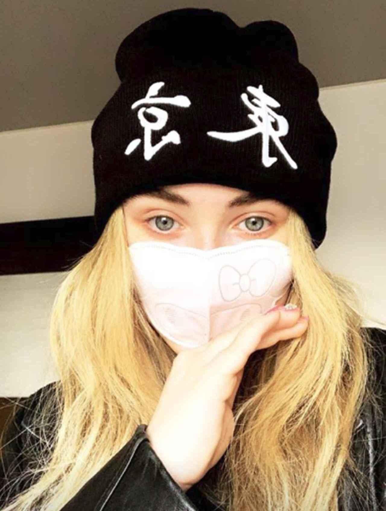 来日中に「東京」ニットとマスクで完全武装!©Sabrina Carpenter/Instagram
