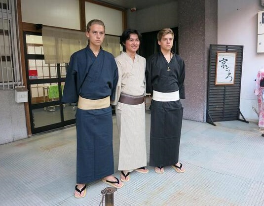 ダヴとソフィア、目黒の日本庭園で和服に初挑戦。©Disney