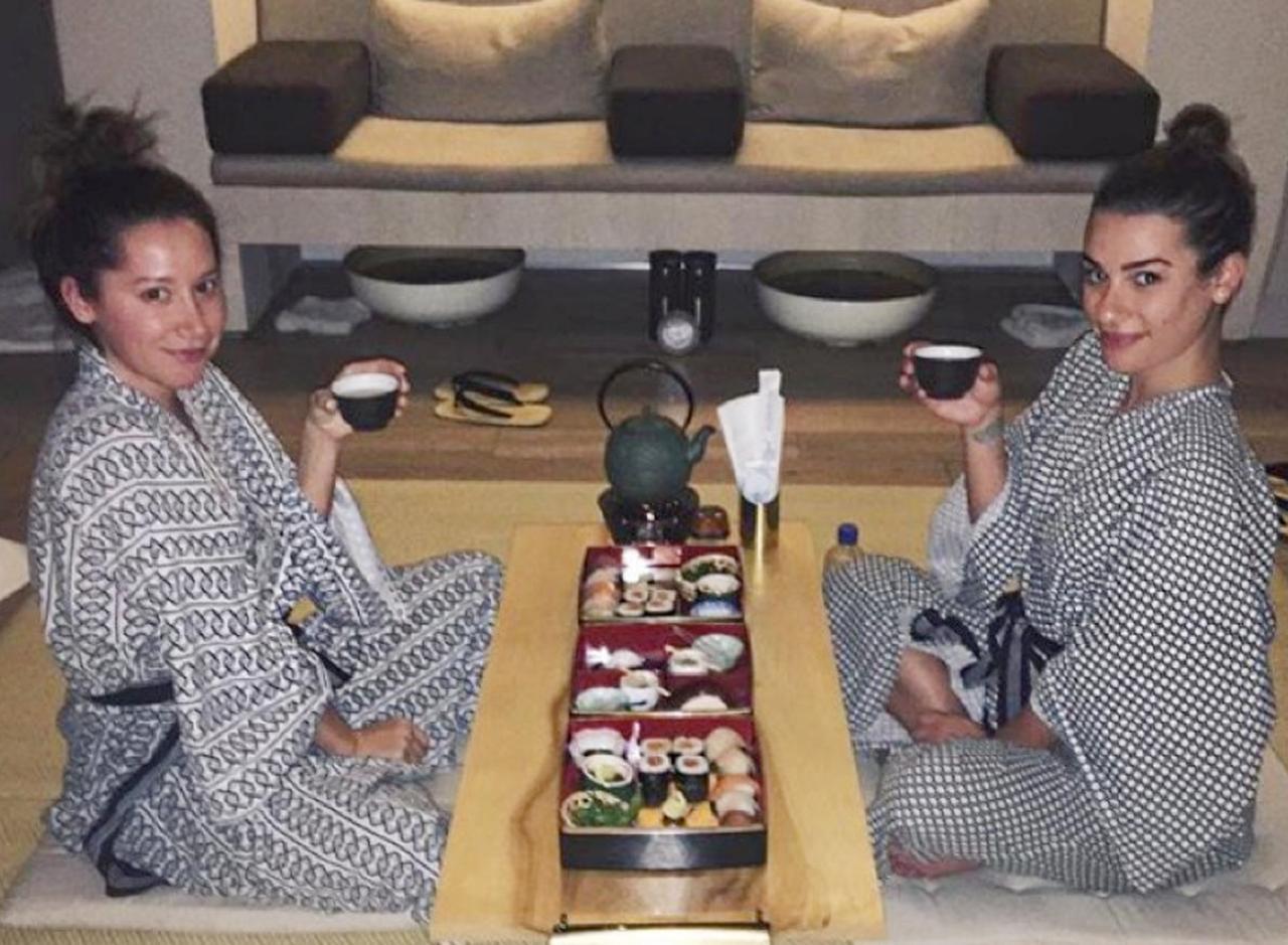 友人である女優のリア・ミシェル(右)と共にLAのスパでお寿司を堪能。©Lea Michele/Instagram