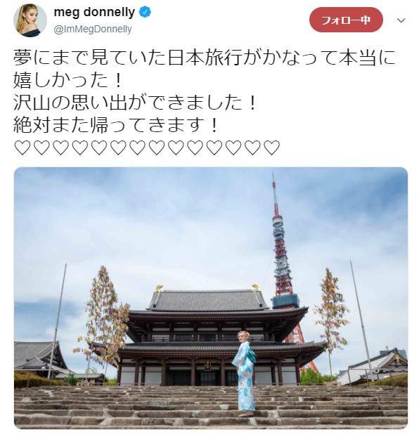 2019年2月に続編の制作が発表されたディズニー・チャンネル・オリジナル・ムービー『ゾンビーズ』のメグ・ドネリーは、DCスターNo.1の日本語能力の持ち主。日本語で頻繁にツイートしており、2019年4月1日に新元号が発表されたときも、「令和。日本おめでとうございます」としっかりツイート。