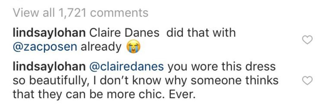 さらにリンジーは、まるで告げ口をするかのように、クレアのアカウントに宛てて、こうも発言。ゼンデイヤの名前は出さなかったものの、かなり語気の荒い言い方で嫌味っぽいコメントを残した。
