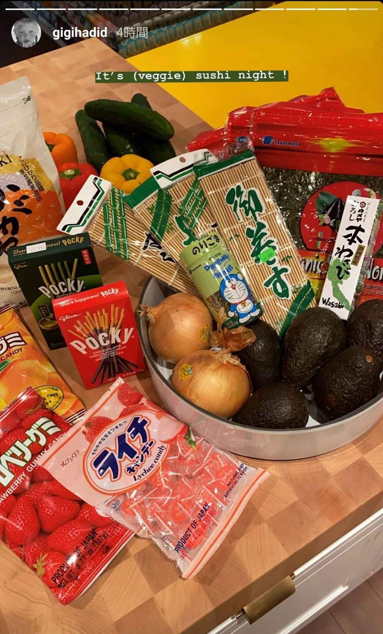 料理好きなジジは、妊婦になっても自分で料理をしているようで、その様子や自身が作った料理のレシピをインスタグラムで公開。そこには、日本の食品がずらり。「(ベジー)スシ・ナイト!」とのキャプションが書いてある通り、この日は自宅で寿司を作ったようで、テーブルの上には、こしひかりのお米や本わさび、そして寿司を巻くときに必要な巻き簾まで用意されており、かなり本格的。
