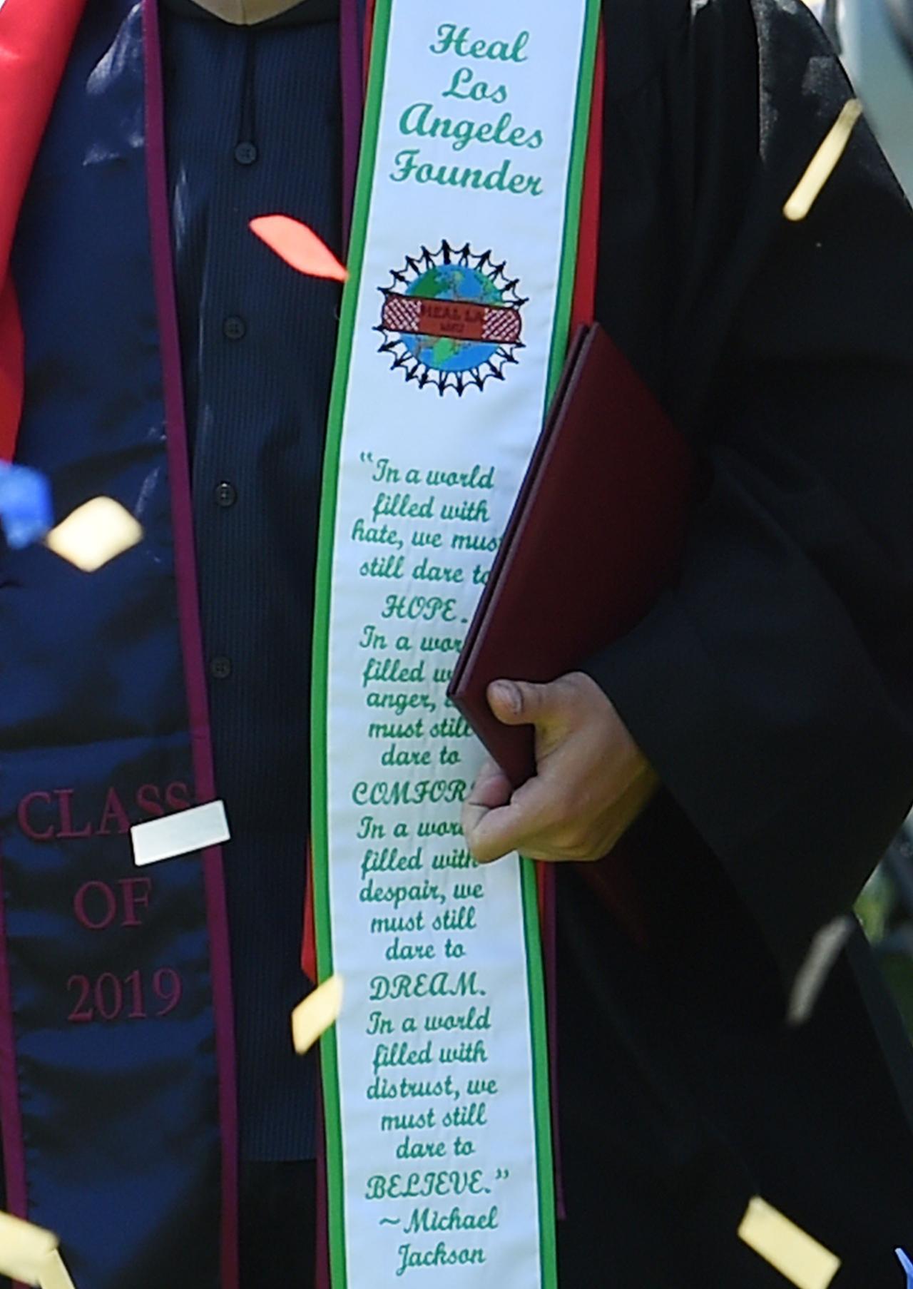 プリンスは、夢を追い続けることの大切さを表現したマイケルの名言を卒業式に身に着けた。