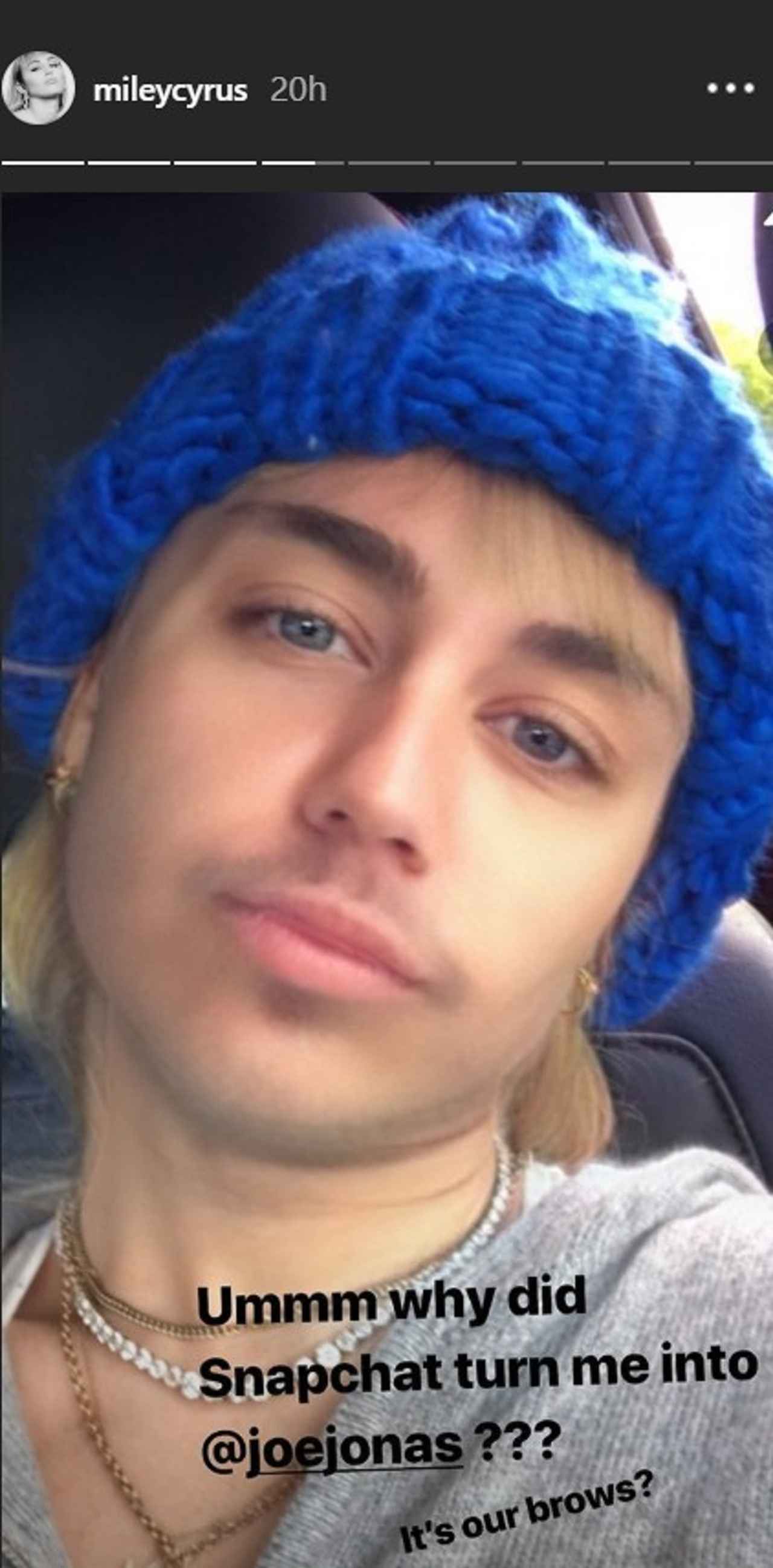 マイリーは、インスタグラムストーリーで、フィルターを使って男性になった自分の姿を公開。