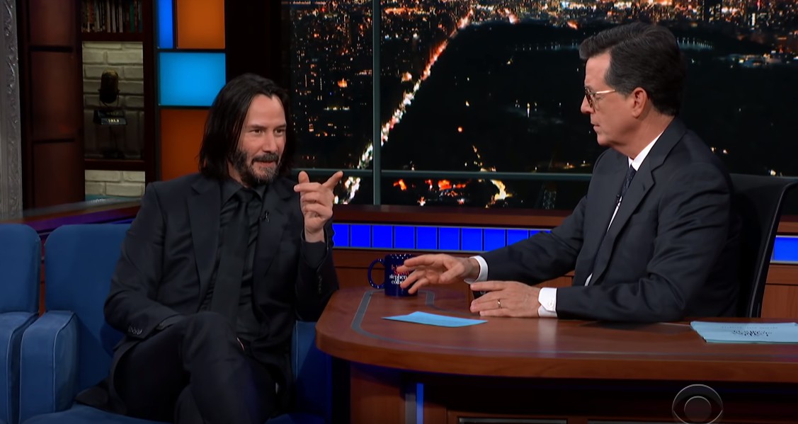 司会のスティーヴン・コルベアと、過去に出演した作品で演じたスタントシーンや、キャリア初期の出演作『ビルとテッドの大冒険』が30年以上の時を経てリバイバルされる件などについて話したキアヌだが、ひょんなことからキアヌの「死生観」に関する話題に。