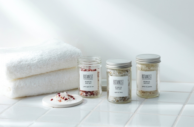 ソルトには、ミネラル豊富なオーストラリアの岩塩と、マチュピチュ近郊にあるマラス塩田の天然塩を採用。BOTANISTの他シリーズでも特に人気の高い3種類の香りに、それぞれマッチするナチュラルドライハーブ1種(エルダーフラワー/ローズ/ラベンダー) を加え、見た目も鮮やかにバスルームをランクアップ。