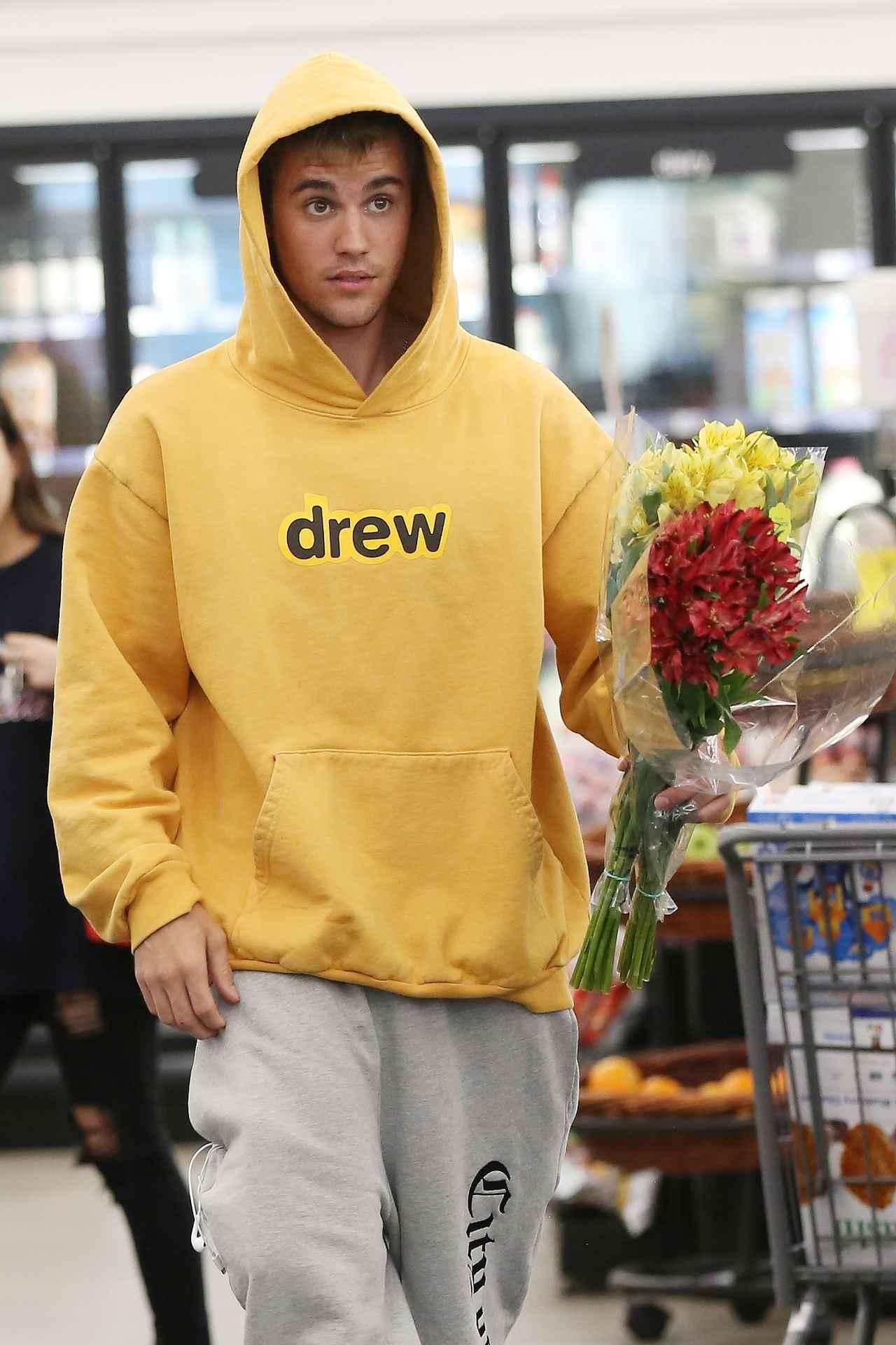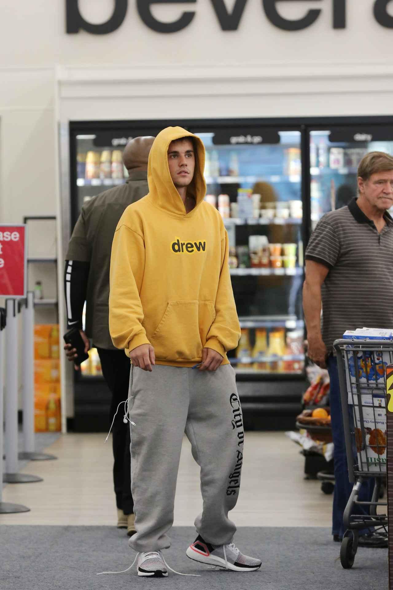 この日、グレーのスウェットパンツに、自身がプロデュースするアパレルブランド「ドリュー・ハウス(Drew House)」のフーディを合わせたカジュアルな服装で、ドラッグストアに1人で姿を現したジャスティン。