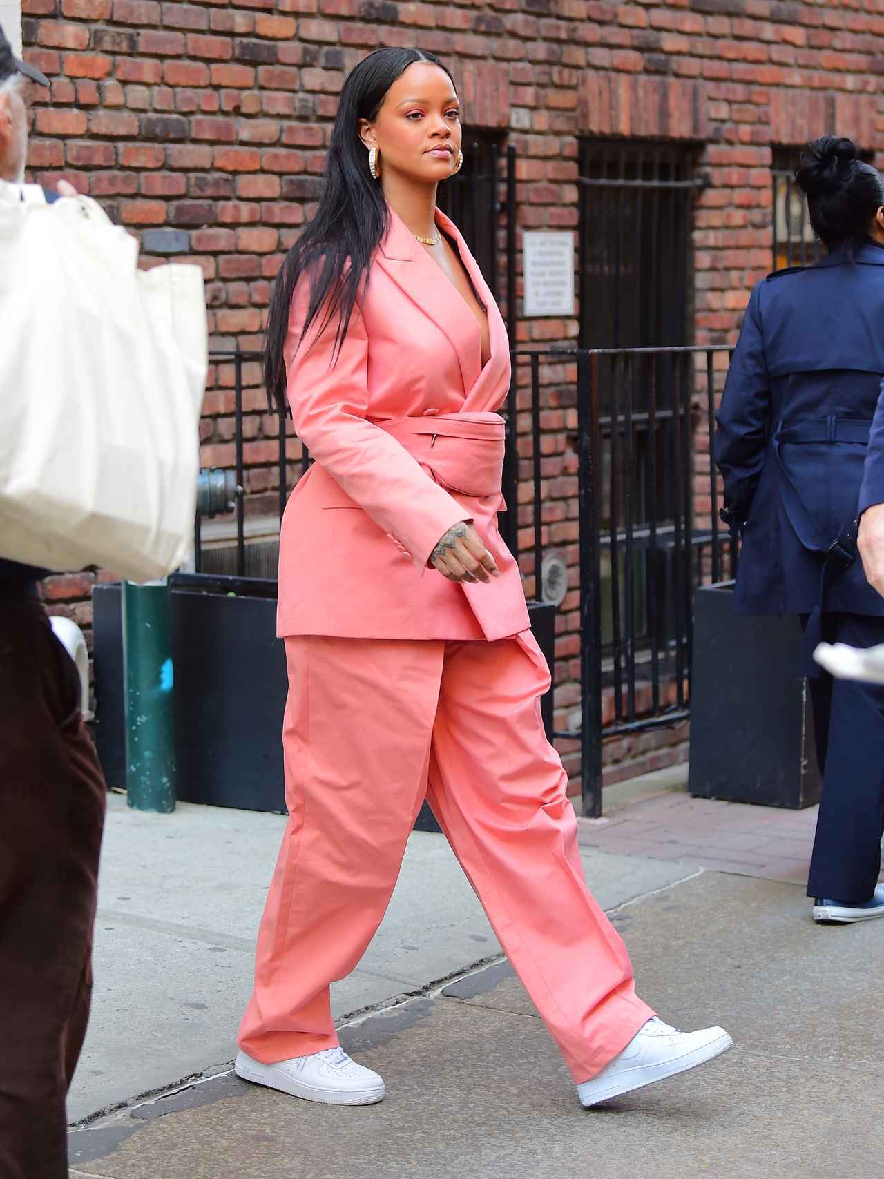 また、すでにリアーナはフェンティのアイテムを着用して外出しており、自らが広告塔になってアイテムをプロモーション。