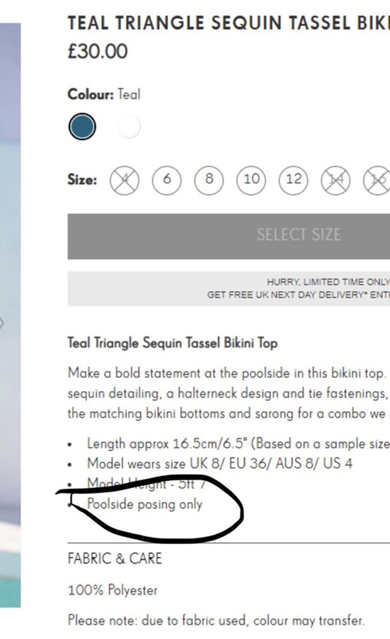 英ファッションブランドのプリティ・リトル・シングス(Pretty Little Things)で売られている、「水に入れない水着」が波紋を呼んでいる。