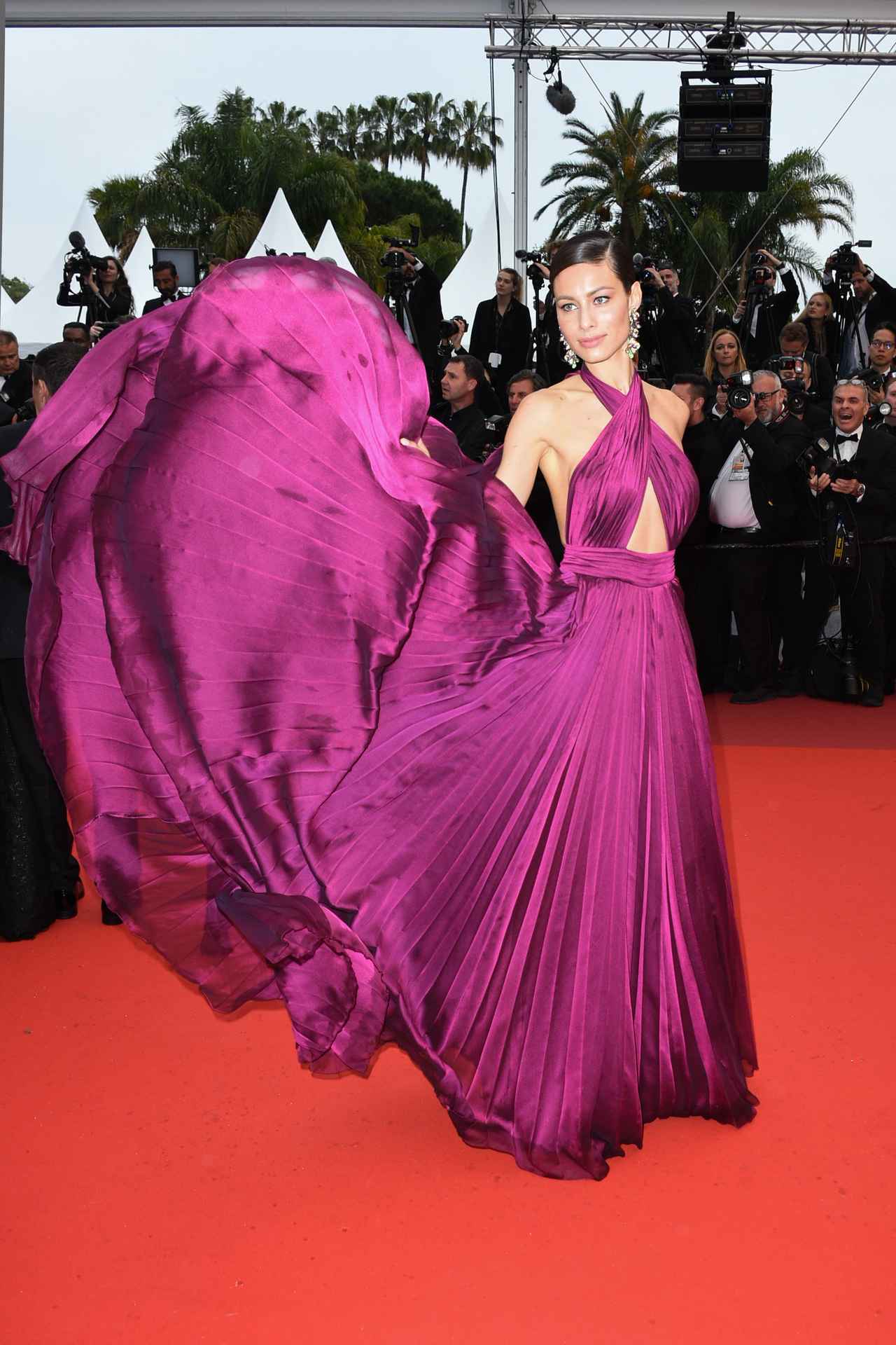 エトロのプリーツシフォンドレスをレッドカーペットでなびかせる姿が神々しい、モデルのマリカ・ペレクリネリ。波打つプリーツでエレガンスを極め、レッドカーペットを華やかに飾った。