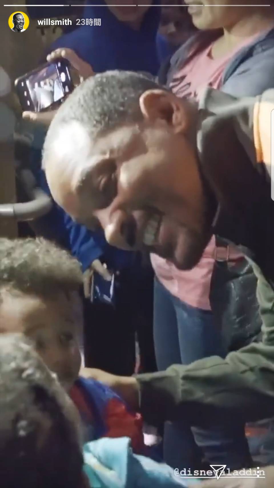ところが、最後の最後にウィルが劇場にいることに気がついた観客は、エンドロールが流れるなかウィルに駆け寄り、一緒に記念撮影。ウィルも嫌がることなく、その劇場にいた観客1人1人と目を合わせ、セルフィーを撮ったり、握手をしたりと、神対応を連発。
