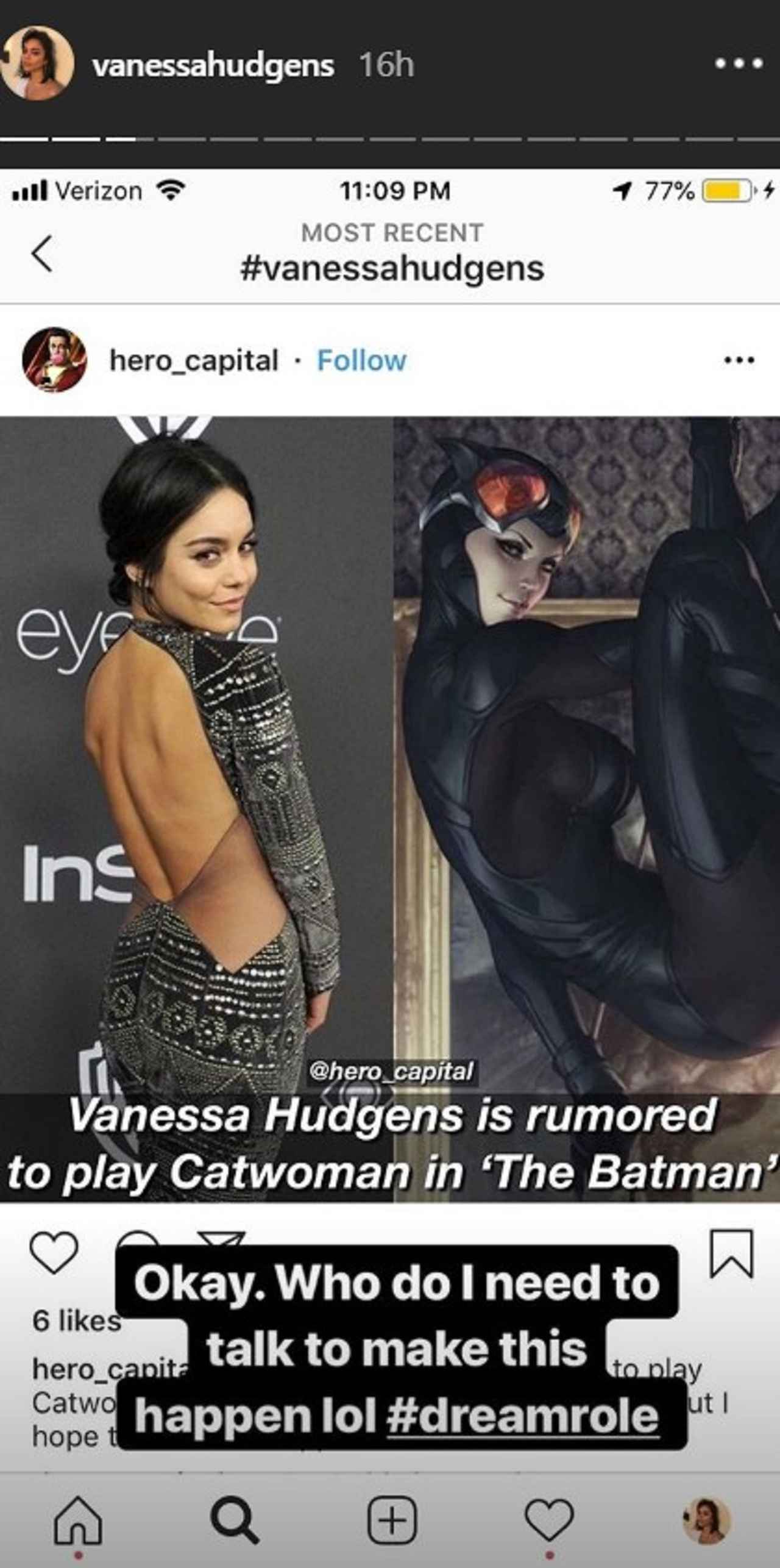 これにヴァネッサ本人が反応し、「オーケー。これを実現させるには誰と話したらいいいのかな」とインスタグラムストーリーでコメント。情報自体は単なるウワサにすぎないことを認めたものの、「#dreamrole(夢の役柄)」というハッシュタグを添えて、キャット・ウーマン役を演じることを熱望していると明かした。