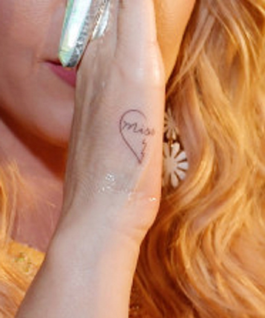 ケイティの右手の側面には内側に「Miss」と書かれたハートの片側半分が彫られており、ファンたちの左手側面には内側に「You」と書かれたもう片方のタトゥーが。