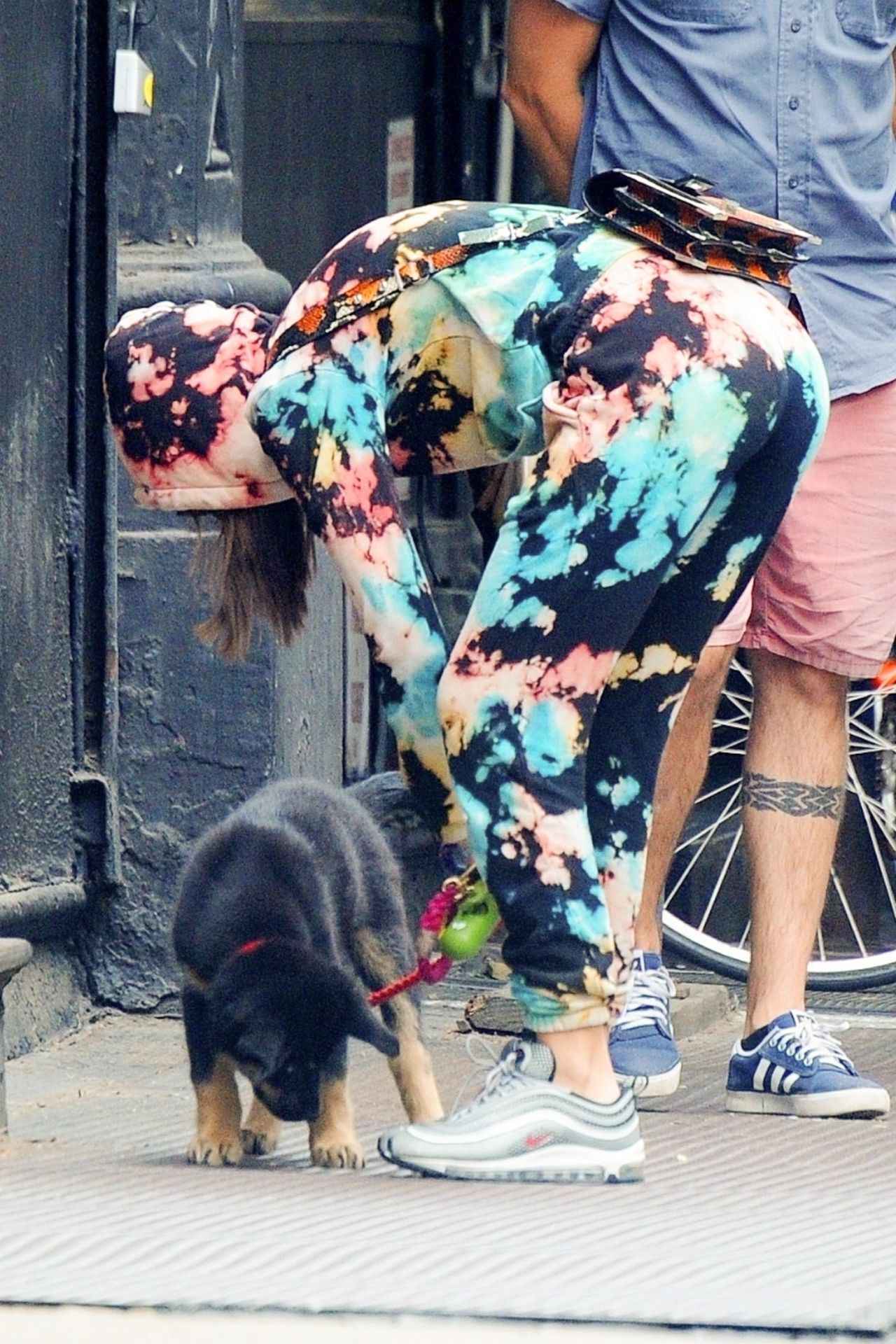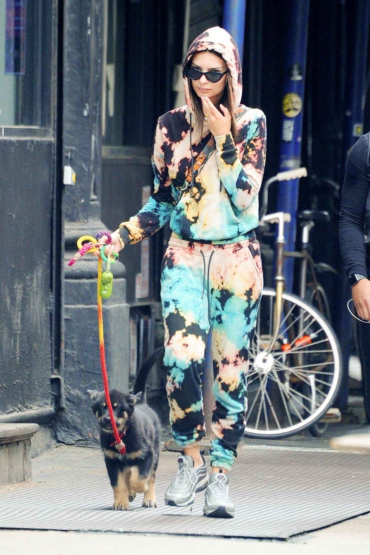 別日には今季のビッグトレンドである、タイダイアイテムのセットアップを着てお散歩中のエミリー。