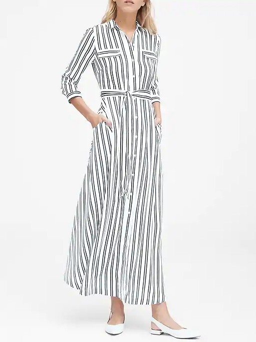 セレブも夢中なストライプのロング丈ワンピースも、セレブ愛用ブランドのバナナ・リパブリックでチェック!