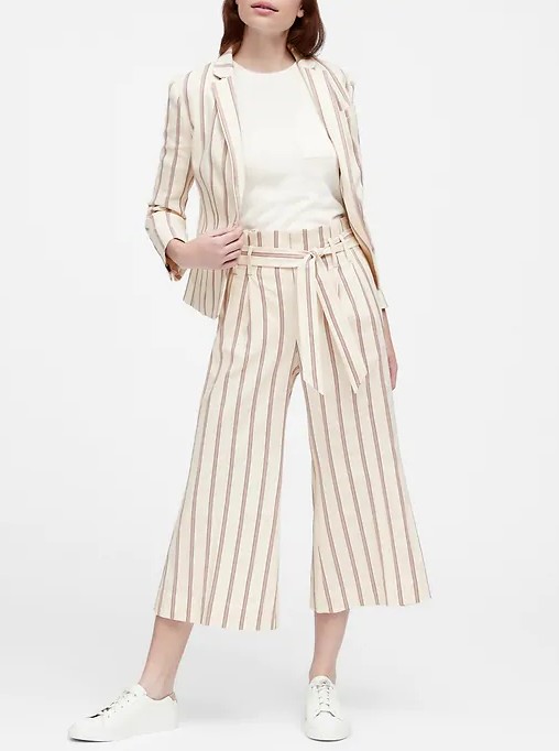 ワイドストライプが旬なバナナ・リパブリックのワイドレッグ クロップド リネンブレンド ペーパーバッグ パンツに注目。