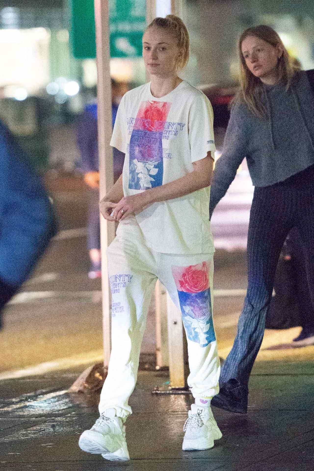 人気ドラマ『ゲーム・オブ・スローンズ』の女優ソフィー・ターナーは、セットアップのアスレジャールックのアクセントに、ネイキッドウルフの厚底スニーカーをONしたモダンなストリートスタイル。