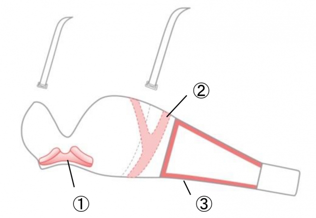 ③脇とバック上下辺の“NANOテープ”がズレを防いで、より高い安定性を実現。