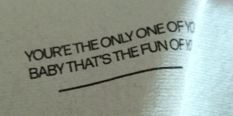 第1発見者の女性ファンが報告したのは、「ME!」の歌詞の一節である「You’re the only one of you」というプリントの「アポストロフィ(‘)」が誤った位置に打たれているというタイプミス。
