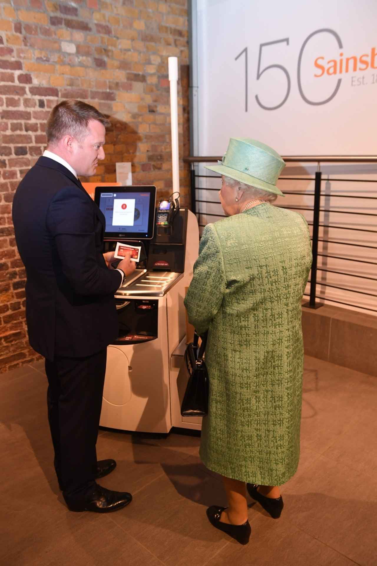 セインズベリーズの重役にセルフレジの利用方法を教わったエリザベス女王は、素早さと便利さに感動していたものの、思わずこんな疑問をポロリ。