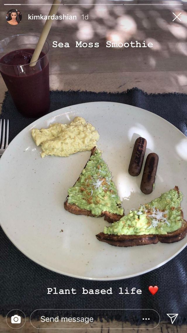 キムは、自身のインスタグラムに、スクランブルエッグやアボカドトーストといったヘルシーな朝食の画像を紹介。