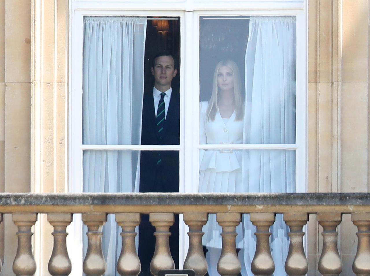 パーティーが始まる前に宮殿内を散策したイヴァンカとジャレッドは、窓から景色を眺める場面も目撃された。バッキンガム宮殿の窓といえば、これまでもウィリアム王子とキャサリン妃の結婚式当日などで、ロイヤルファミリーが国民の前に姿を現す場として使われてきた晴れやかな場所。しかし窓の外から撮られたイヴァンカとジャレッドの写真が、「ホラー映画」だと話題になっている。その写真がこちら。