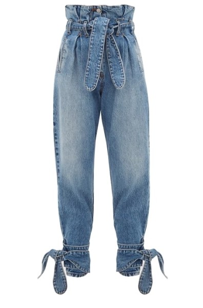 ウエスト部分が、ペーパーバック(紙袋)を絞ったようなフォルムから命名された、新しいフォルムのデニム。80年代を彷彿させるヒップなデザインは、ウエストと足首をリボンで縛ってスタイリッシュにアップグレード。