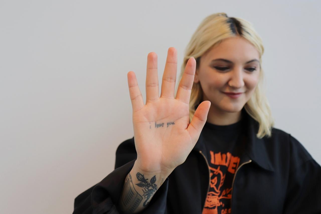 「この『I love you(愛してる)』っていうタトゥーは自分に向けたものなの。自分を愛してるんだって思い出せるように入れた。ナルシスト的な意味で入れたわけじゃないよ。『自分に厳しくしすぎないで』っていう意味を込めてる。左手には『more(もっと)』って入れたいの。手のひらに入れるのは痛いけど、こっちはほかの人用ね。私のこの右手のタトゥーを見て、『I love you too(私もあなたのこと好き)』って言ってきたら、『more(私の方がもっとあなたのことを愛してる)』って見せられるでしょ(笑)」