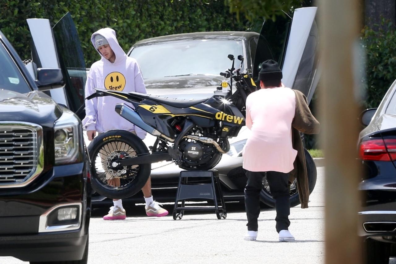 オーストリアを代表するオフロードバイクメーカー、KTMの500 EXC-Fと呼ばれる人気車種を自身がプロデュースを手がけるアパレルブランド「Drew House(ドリュー・ハウス)」仕様にカスタムしてもらったジャスティンは、納車後早速、妻でモデルのヘイリー・ビーバー(旧姓ヘイリー・ボールドウィン)の立ち合いのもと即席撮影会をスタート。