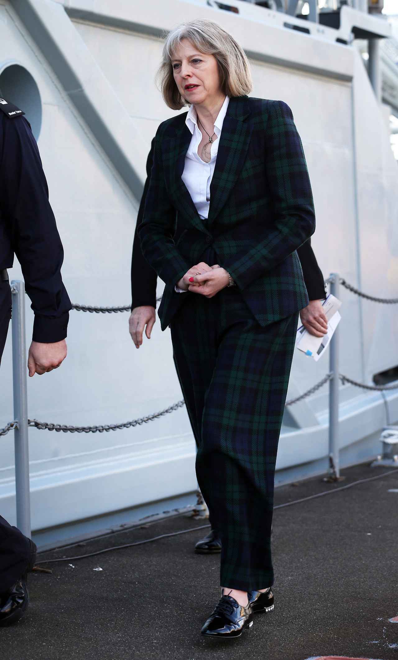辞任表明を行なって世界中で話題のイギリスのメイ元首相。大の靴好きで知られ、数々のおしゃれな靴を披露してきた彼女は、おしゃれなチェックプリントのパンツスーツに、レースアップシューズを合せたマニッシュなルックを作って。