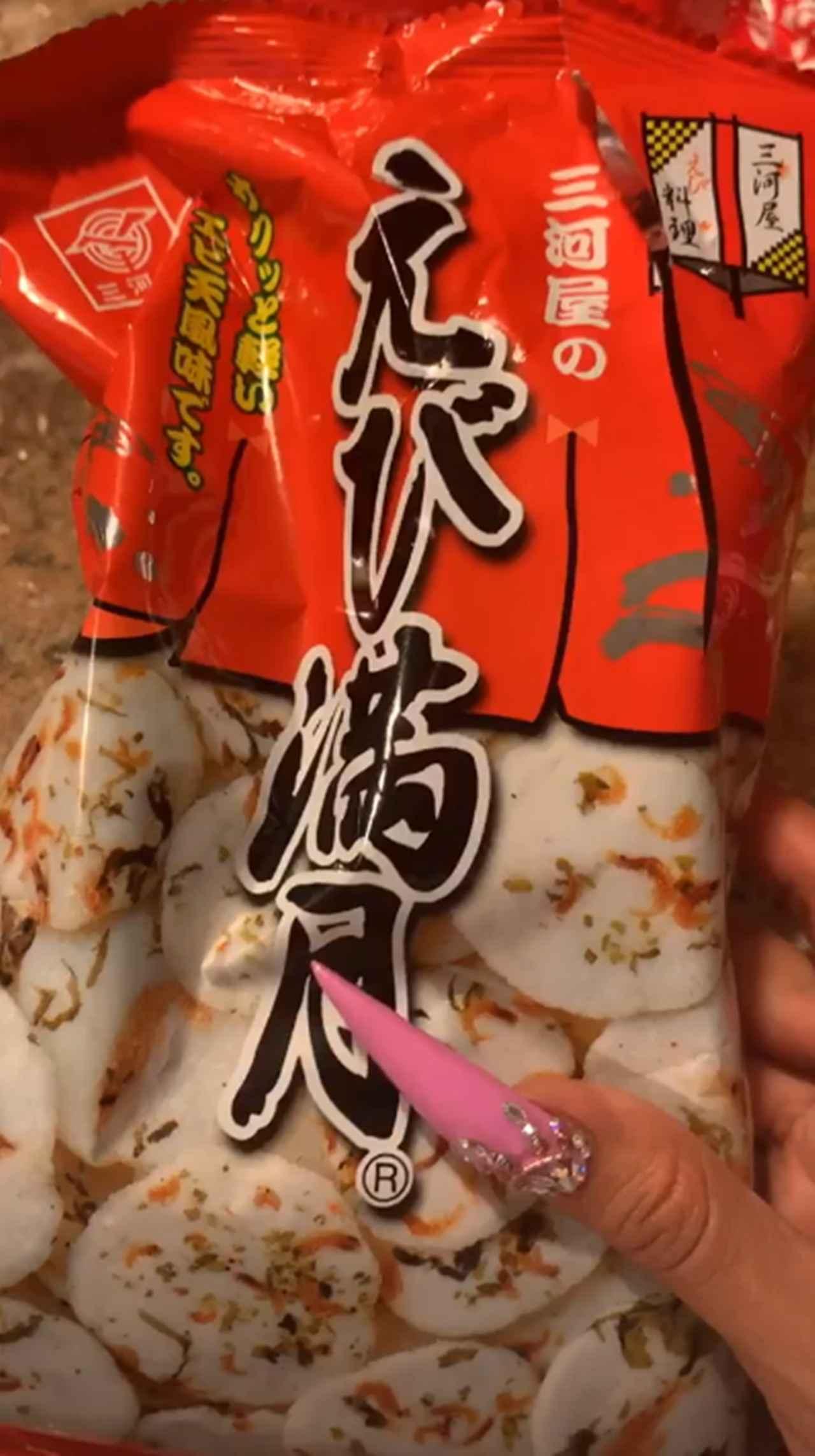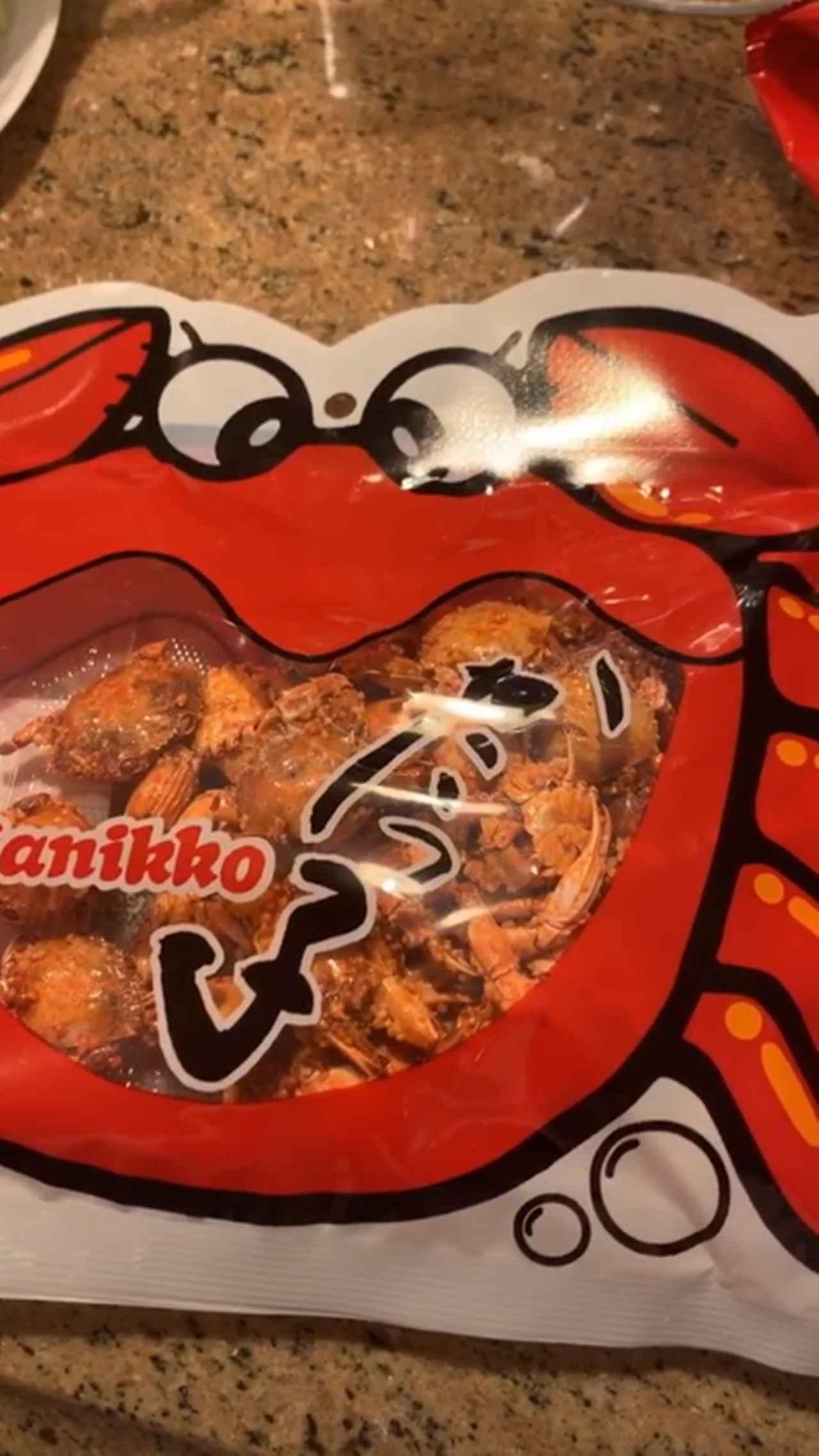 続いてカーディが紹介したのは、ひと口サイズの蟹が丸ごと食べられるスナック菓子「かにっ子」。じつはカーディは大の蟹好きとして知られており、過去にプライベートジェットで豪快に蟹を頬張る映像が話題になったことも。
