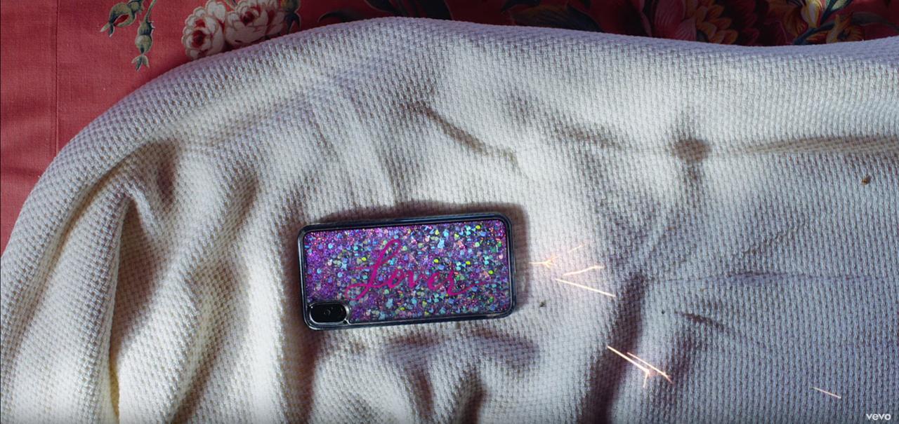 ニューアルバムのロゴが描かれたスマホケースは、テイラーのオリジナルグッズの可能性が。ほかにもアルバム『Lover』のロゴのストローなど、グッズになりそうなアイテムが見られる。