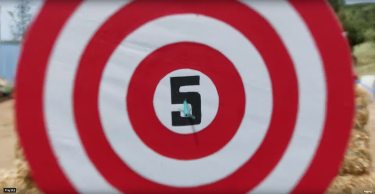 ヘイリー・キヨコによって放たれた矢が刺さったのは、ブルに5が記された的。ファンの推測によると、テイラーのアルバムの5曲目が最もパワフルで心打つ楽曲であることが多く、同曲がニューアルバムのトラック5になると予想している。