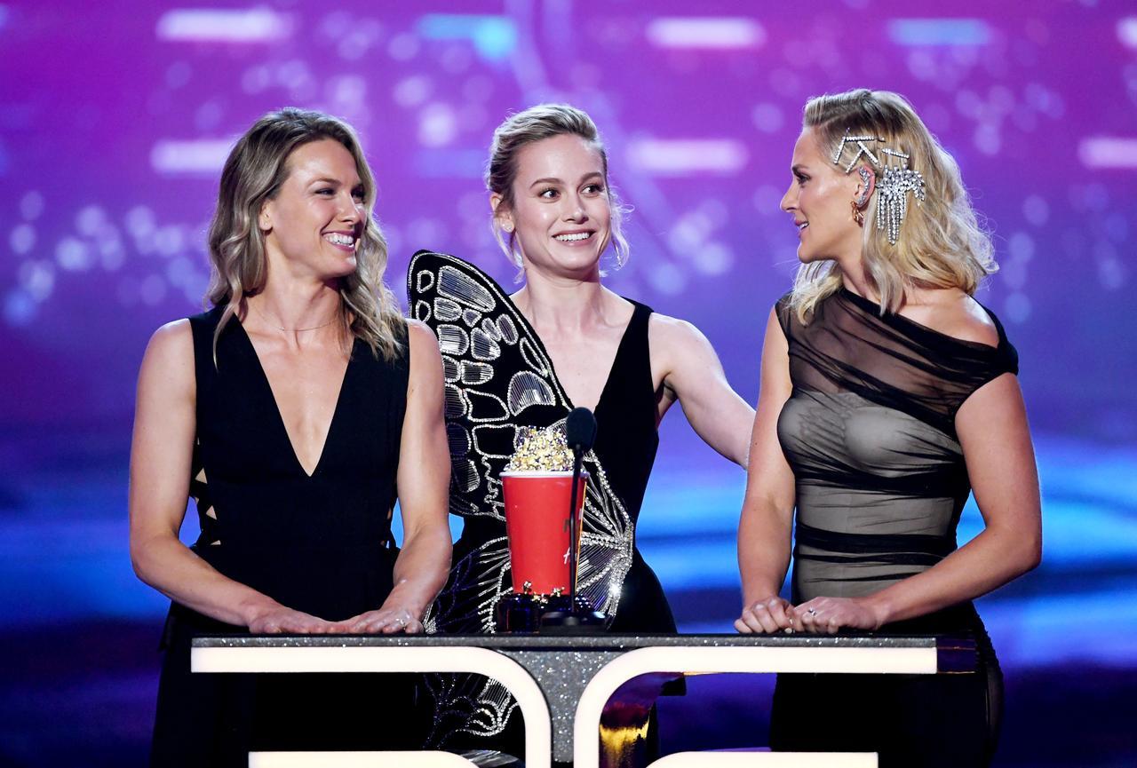 先日行なわれたMTV主催の映画とテレビ番組の祭典「MTVムービー&TVアワード(MTV Movie & TV Awards)」で、ベスト・ファイト賞を受賞したマーベルMCU映画『キャプテン・マーベル』の主演女優ブリー・ラーソンが、同映画で自身のスタントの一部を担った女性スタントマンのレネー・マネーメイカーとジョアンナ・ベネットと一緒にステージに登壇。