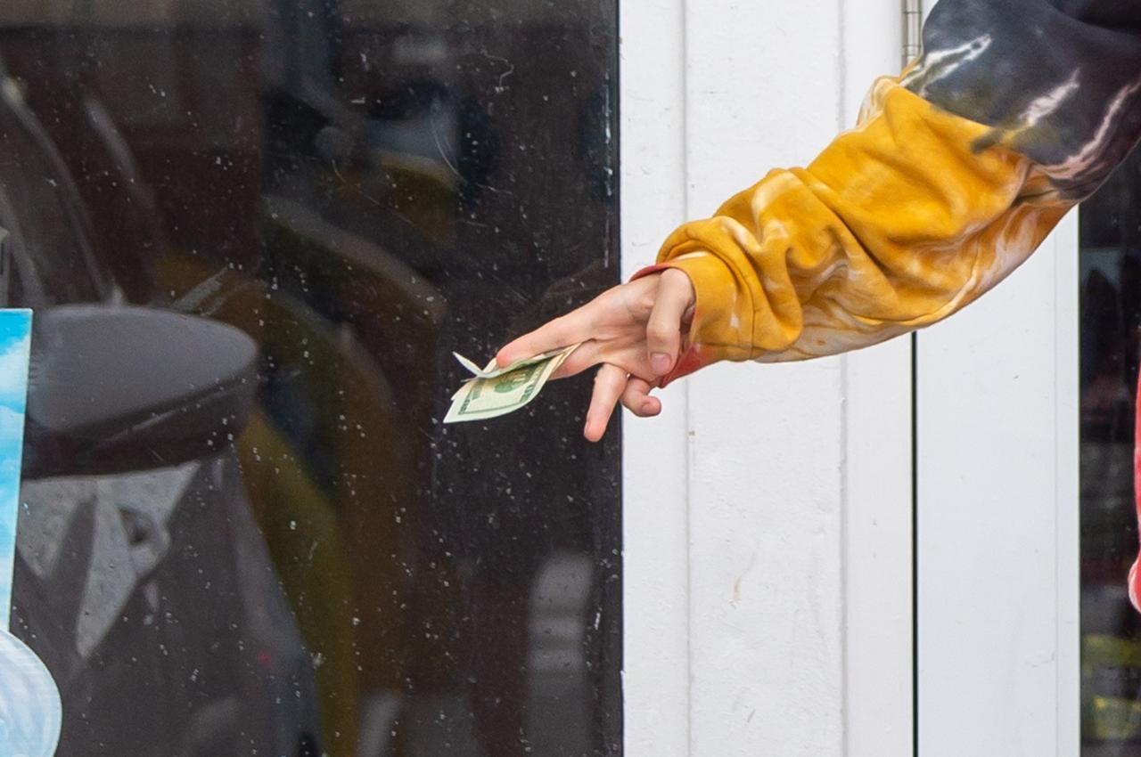20ドル紙幣(約2,200円)が1枚と、その下にもお札が1、2枚隠れているようなので、20ドル以上の手渡したことは間違いないが、総額で一体いくら援助したのかは不明。