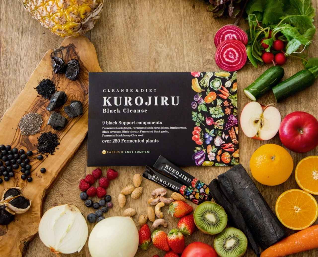 油をぐんぐん吸着して吸収。水をクリアに浄化してしまうほどのクレンズ力! さらに黒汁(KUROJIRU)には、厳選された2種類の乳酸菌や9種類の美容サポート成分も配合。