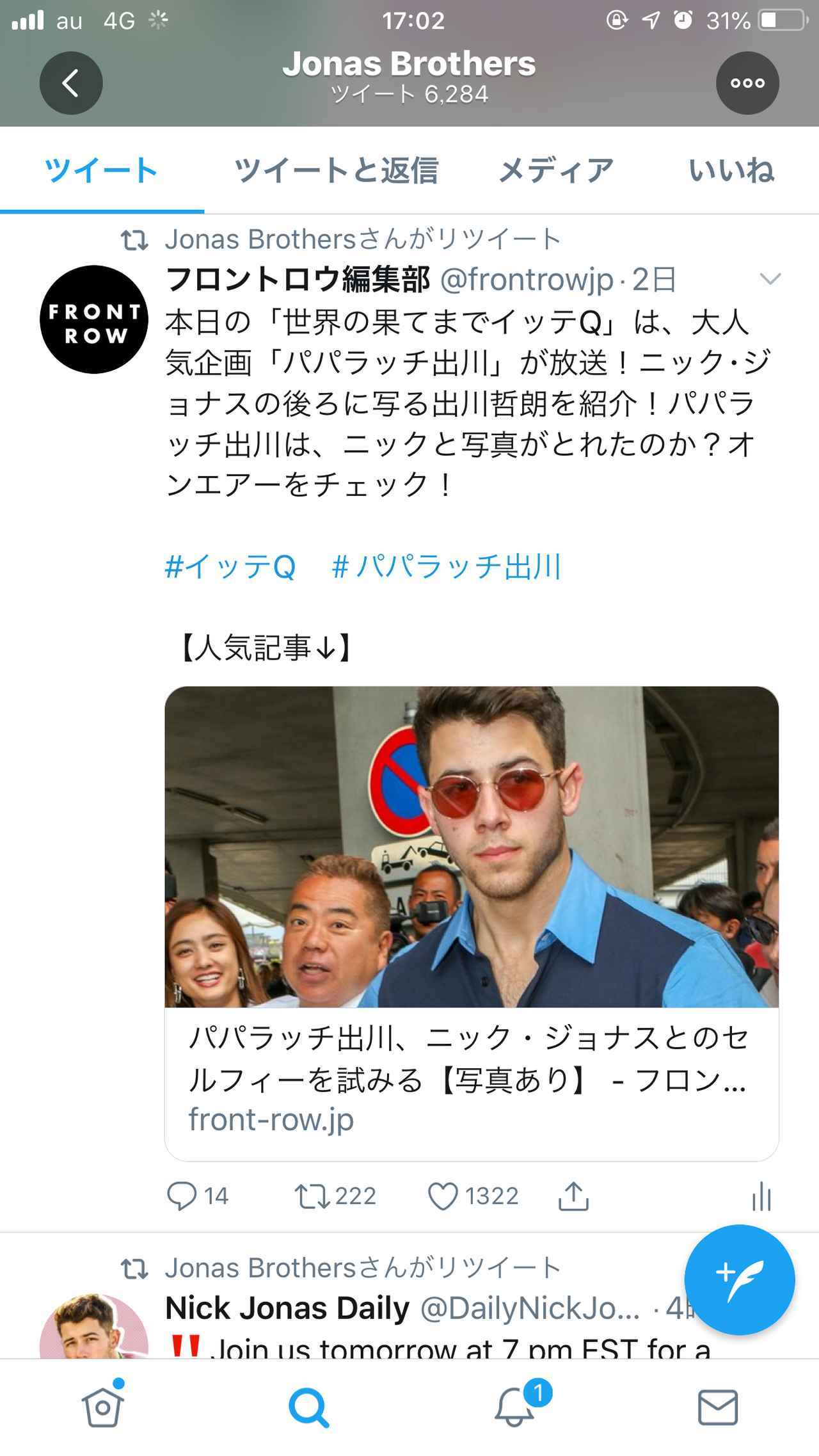 なんと、本家のジョナス・ブラザーズのツイッターが、フロントロウ編集部のツイートをリツイートして「パパラッチ出川」に反応。