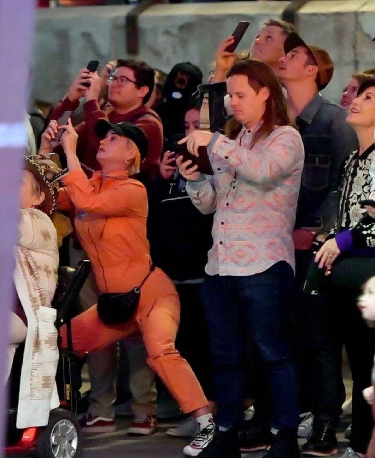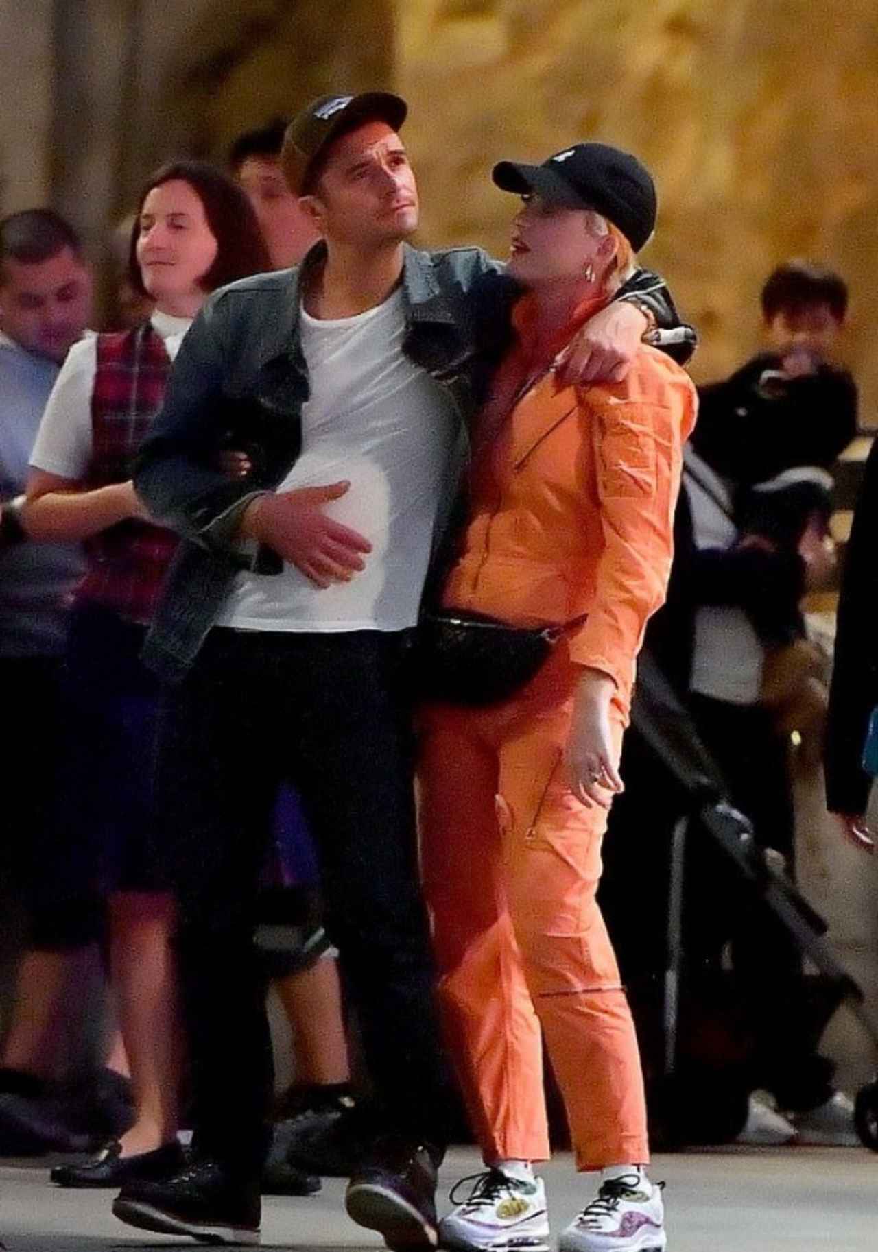 オレンジ色のジャンプスーツにスニーカー、ベースボールキャップ、ウェストポーチと動きやすいラフな服装で来演したケイティは、同じくカジュアルな装いのオーランドと思いっきりイチャつくなど、一般来園者たちの視線を集めていた。