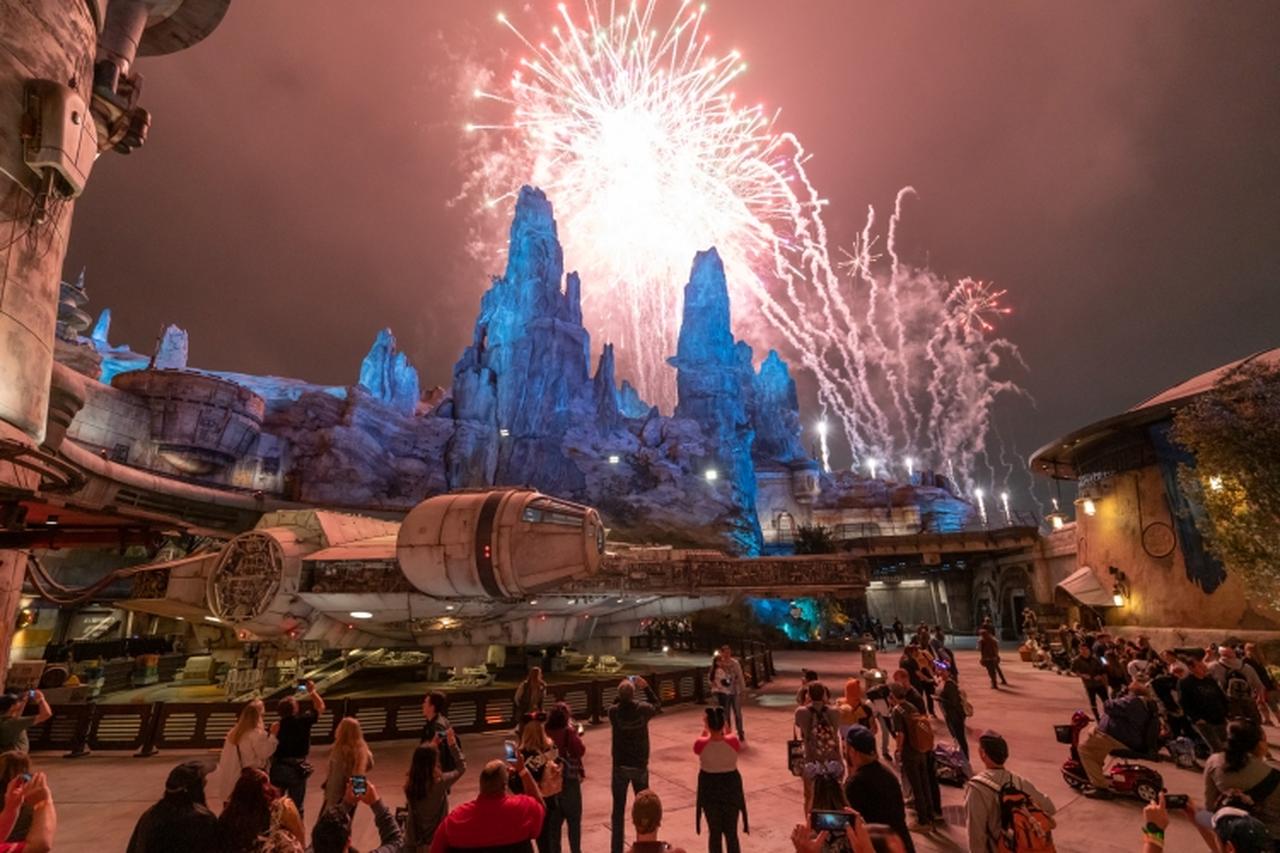 「スター・ウォーズ:ギャラクシーズ・エッジ」での花火の様子。