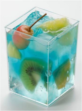 ブルーのパインゼリーにトロピカルフルーツとナタデココが入った清涼感あふれるカップデザート。