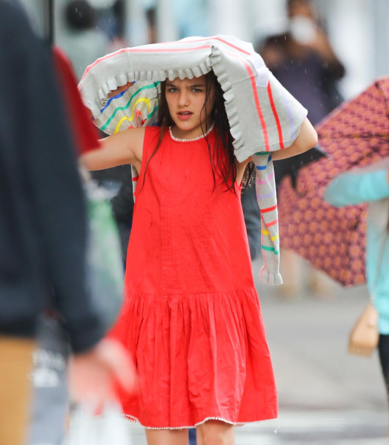 近くにはスリちゃんのナニー(子守)と思われる女性が傘を持っているにもかかわらず、スリちゃんは傘をさすことなく、映画さながらカーディガンを頭からかけて傘代わりに。映画に出てくる女優のような仕草を自然にしてみせた。