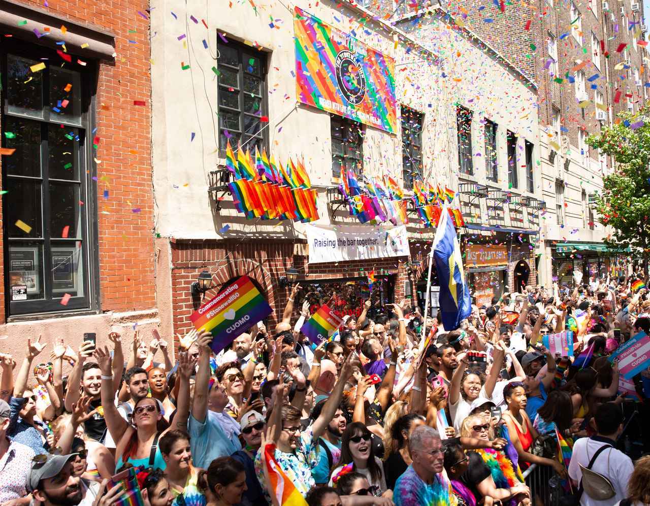 ストーンウォール・イン前では、多くの人がプライド月間を祝福。