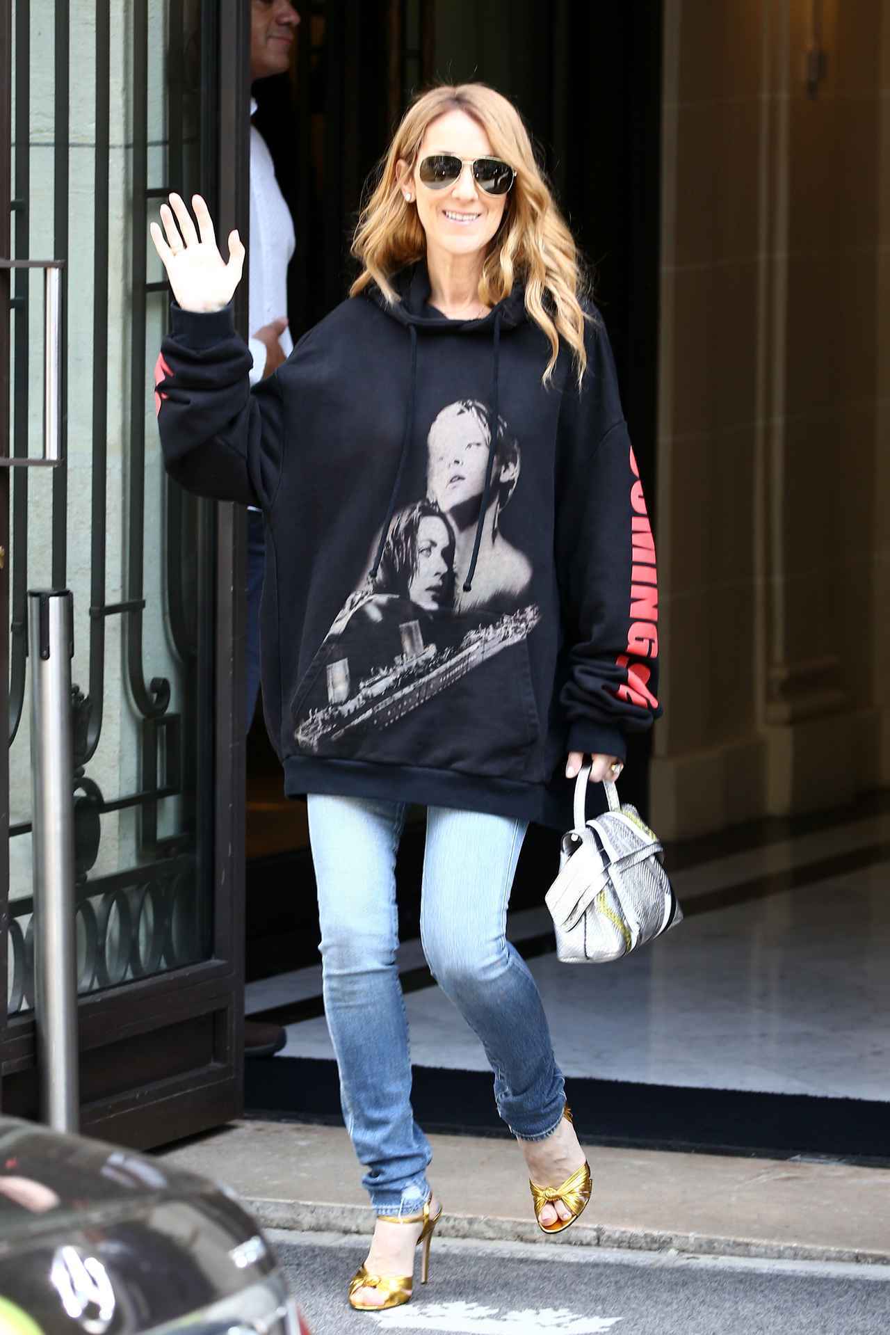 「マイ・ハート・ウィル・ゴー・オン」でグラミー賞を2つも獲得し、『タイタニック』とは切っても切れない関係であるセリーヌがパリの街中で、映画に関連するアイテムを身につけている姿をキャッチされた。